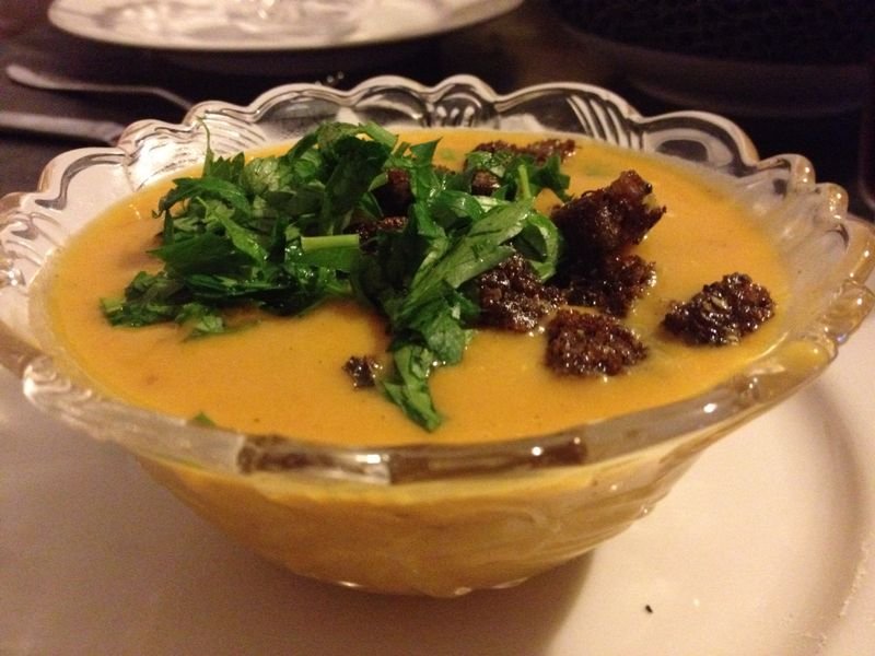 Purér suppen med en stavblender, og tilsæt til sidst creme fraishe.